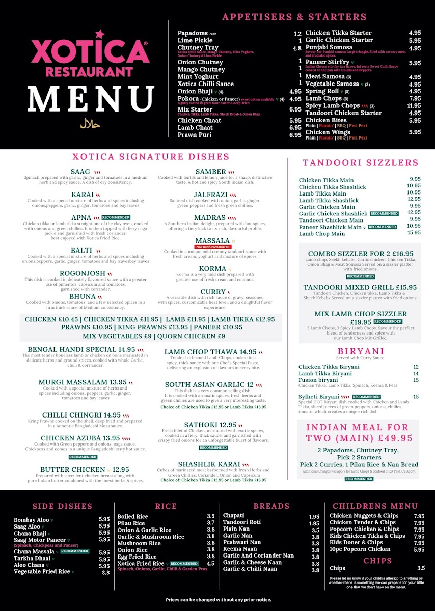 Welcome to Xotica Restaurant, a culinary gem nestled in Walkden, Manchester. This delightful eatery offers a vibrant and luxurious atmosphere, perfect for any occasion. The menu highlights a variety of indulgent dishes that showcase the rich flavors of its kebabs and curries.